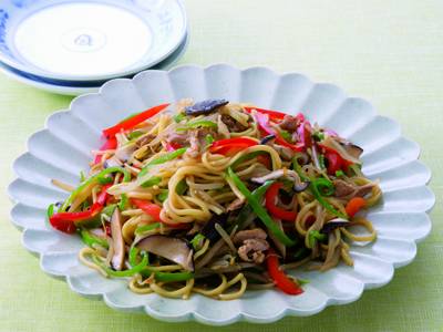 お手軽お昼ごはんの代表、焼きそば。具だくさんの焼きそばには、母親の子どもの成長を思う気持ちが詰まっています。美味しくなるコツは、具を加えるごとに、味つけすることです!