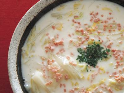 塩ゆでして引き出した白菜の甘みを生クリームがトロリと包み込む、体が温まる定番の煮物です。