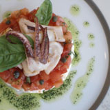 フランス式のオープンサンド「タルティーヌ」をピザ風にカリッと焼き上げます。
