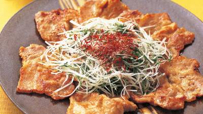 下味に卵とかたくり粉を使う、ふんわりとしたしょうが焼き。白髪ねぎをたくさん包んで食べてください。