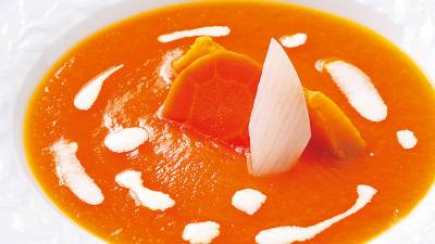 野菜のうまみたっぷり、色鮮やかなスープです。かぼちゃの甘みと、八角の香りが程よいアクセントに。