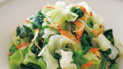 これ1品で野菜120g以上!蒸し煮にすることで野菜がたっぷりとれる副菜です。桜えびでカルシウムもプラス!