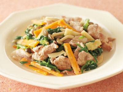 野菜たっぷりのしょうが入りのあんでまとめた炒め物。薄切りとすりおろしのしょうがで温まります!