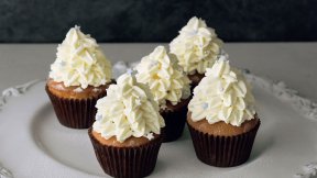 小さなカップケーキにホイップクリームのデコレーションで雪が積もったもみの木を表現しました。カップケーキは甘さ控えめで素朴なおいしさ。たっぷりのクリームとのバランスが絶妙です。