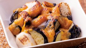 油のなじんだなす、ボリューム感のある里芋にしょうが風味の練りみそをかけて焼いた、田楽風のグラタン。火を通したみその深い味わいが、野菜を「ごちそう」に仕立てます。
