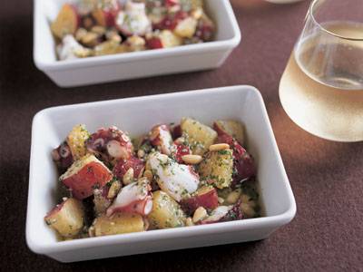 じゃがいもを使ったフランス風のおそうざい。豚肉のゆで汁を使ったソースでいただきます。