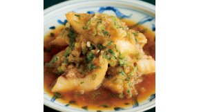 たいを、外はサクッと、中はフワフワの香ばしいから揚げに!甘酸っぱいおろしだれをたっぷりからめれば、後味は軽やかです。ほかの魚でつくってもおいしい。