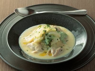 白菜の甘みと鶏肉のうまみを、白みそと豆乳でまとめます。くず粉でとろみをつけるので、体を温める効果も抜群!