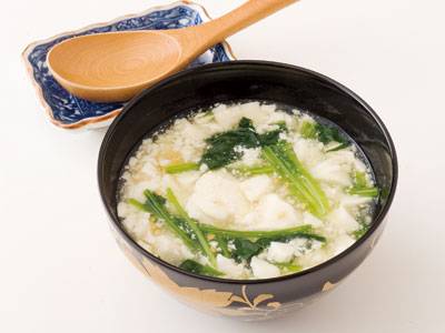 豆腐をたっぷりくずし入れ、食べやすいポタージュ風に仕上げました。手軽で栄養満点なので朝ごはんにもぴったり。