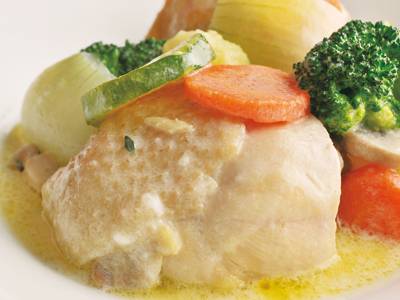 スープとしてでなく、鶏肉と野菜を味わうレシピ。ホワイトソースをからめて食べます。