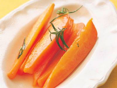 付け合わせの定番、にんじんグラッセ。砂糖を使わず、にんじんの甘みを生かすのがポイント。