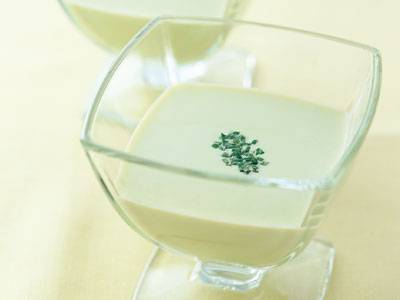 枝豆を使った冷たいスープも、ブイヨンをとっておけば簡単。ミントが、豆独特の青い香りをやわらげてくれます。