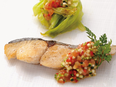 オリーブ油で香ばしく焼き上げたさわらに、レモンの酸味が爽やかな、“食べごたえのある”ソースを合わせます。
