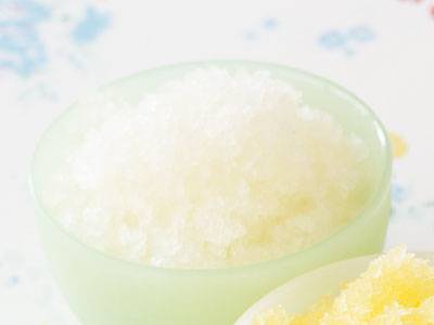 果汁とシロップを混ぜて凍らせただけの簡単シャーベット。フレッシュなフルーツの風味と食感が楽しめます。