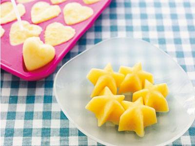 型に入れて冷やし固めるだけのアイスキャンデー。好きな形の製氷皿やキャンデー型で。