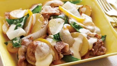 3本分のねぎと豚バラ肉をシンプルに重ね蒸しにした一品。はちみつと粒マスタードのやさしい甘さとコクで、おいしさ倍増です!