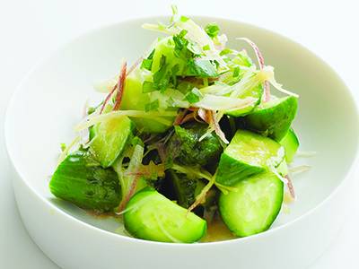 きゅうりのみずみずしさと、みょうがの香りがベストマッチ。さっぱりといただけます。