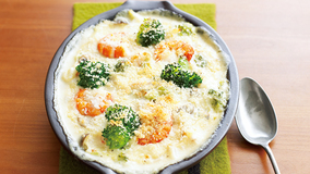 ブロッコリーとえびの彩りで食欲アップ。きのこやたまねぎといった、うまみの多い野菜が、控えめながらもしっかりと味に奥行きを出してくれます。