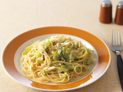 ねぎの名産地、埼玉県深谷市にちなんで「深谷パスタ」。ねぎは2回に分けて炒めると、トロッとした甘みとシャキシャキとした食感のダブルのおいしさが堪能できます。仕上げにねぎと相性のよいオイスターソースをプラスするのがポイント!