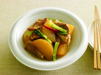 表面をこんがりと焼き、フライパンでそのまま煮込みます。少ない煮汁でも、しっかり味がしみ込んで柔らかに。一緒に煮たゆで卵もおいしい!