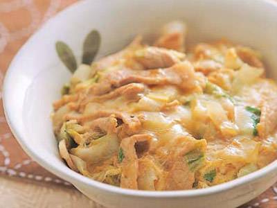 余った豚肉と野菜を卵でとじれば、それはもう立派な一品料理の完成です。ご飯にのせずに、酒のつまみにしてもおいしい。
