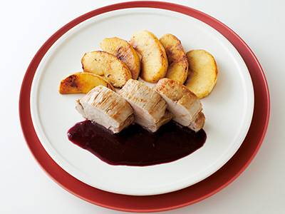 脂が少なくあっさりしたヒレ肉を柔らかく焼き上げましょう。甘酸っぱいりんごのソテーがよく合います。