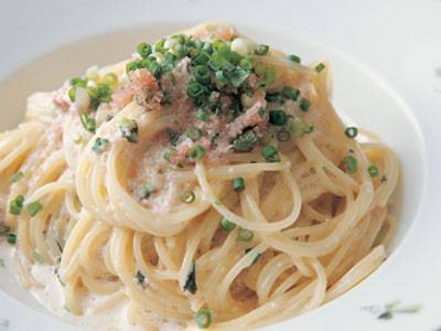 にんにく、オリーブ油、赤とうがらしのシンプルパスタ。オリーブ油ににんにくのうまみと香りをしっかりと移すことがコツで、パスタの基本です。