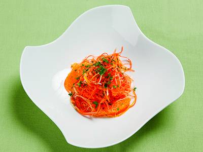 しらすの濃厚なうまみが際立つ一品です。アスパラガスをゆでずに使い、青々とした香りを楽しみます。