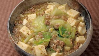 あっさりなのにコクがある、ねぎをたっぷり使った”白いマーボー豆腐”です。野菜もとれる、冬のあったかおかず。