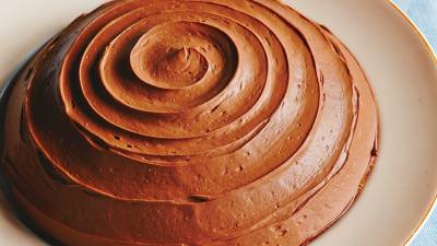 米粉のスポンジケーキのデコレーションクリームをアレンジ。豆腐のくせをやわらげ、チョコ風味に。