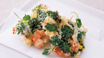 無理なく、おいしい減塩和食づくりに、牛乳が大活躍。牛乳のうまみを衣に生かしたかき揚げは、調理に塩を使っていないのに、つけ塩や天つゆなしでも、十分おいしく食べられます。