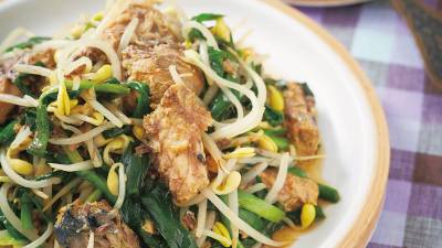 カレー粉を使い、さば缶の独特なくせを取って食べやすくします。仕上げに加える酢が、全体をおいしくまとめます。