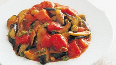 揚げなすとトマトの辛み炒め