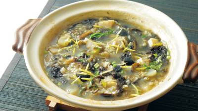 のりとしじみのおいしさを余すところなく楽しめます。祝いの料理「のりふで」をヒントに進化させた雑炊。根菜がたっぷりで、体が温まります。