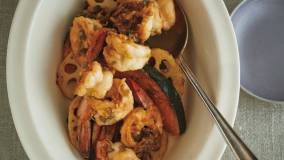 ごぼうは皮に香りとうまみが含まれるので、皮をこそげ落とさずに手羽中とともに香ばしく焼きつけます。甘酢をからめると、白いご飯が恋しくなる、秋のごちそうのでき上がり!