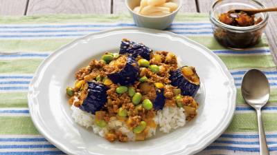 レンジ蒸しのなすに、ごまソースをトロリとかけて。いくらでも食べてしまいそう。