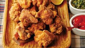 ソースも楽しみたいから、から揚げはうす味に仕上げます。丁寧な下準備で効率よく揚がり、意外にも後味はさっぱり!?