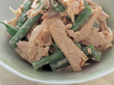 外はサクサク、中はふんわりと焼き、あじのうまみを引き出します。歯ざわりのよい大根の塩もみと一緒にさっぱりとどうぞ。