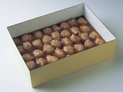 口当たりの柔らかい、しっとりとした肉だんごです。クビ骨を砕いて加えると、なおいっそうおいしくなります。