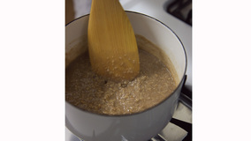 「蒸らし炒め」で材料のうまみを引き出したポタージュ。米でとろみをつけ、幼児から老人まで食べやすくしてあります。