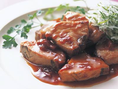 厚めのかつおにしっかりと火を通し、梅肉などを練り合わせた濃厚なソースで。ご飯がすすむ一品です。