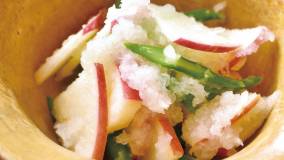 揚げ物の副菜によく合うおろしあえです。自家製の昆布甘酢と大根おろしのおかげで、口の中がさっぱりとします。ほかにイクラやなめこをあえたり、焼いたきのこでもおいしい。
