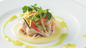あっさりした豚しゃぶ肉とせん切り野菜を、トロリとしたセロリのソースでいただきます。豚しゃぶ鍋のたれとしてもおいしいですよ!