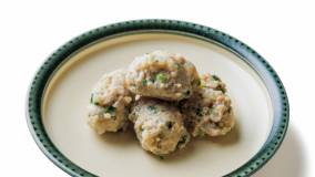 春キャベツを外葉から軸や芯まで一緒に煮た、シンプルなスープ煮です。鶏だんごのうまみが詰まった煮汁ごと楽しんで。