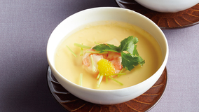 えびとくりの鮮やかな色合いが、まるで紅葉と月のよう。チーズのまろやかな塩けが、くりの甘みを引き立てます。