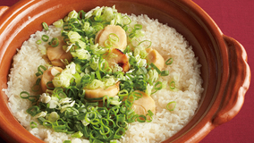ハレの日にうれしい炊き込みご飯。焼き目をつけた帆立てを米にのせて炊き、うまみと香りを閉じ込めます。土鍋ごと食卓にどーんと出せば、ごちそう感がぐんとアップします。