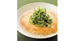 ゴーヤーの苦みに梅の酸味がよく合い、食欲のない夏場でも、サラリと食べられる汁めんです。