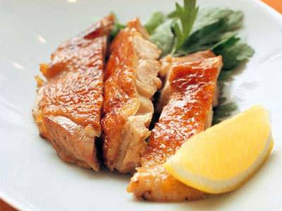 香ばしく焼き上げた鶏肉に、たっぷりの香味野菜を添えて。エスニック風のたれも、食欲を刺激します。