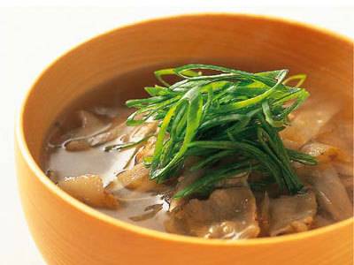 具は豚肉とごぼうのシンプルお味噌汁です。にんにくみその風味を味わいます。