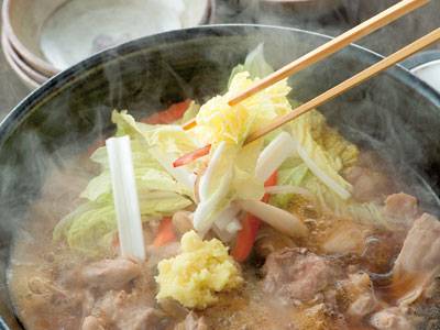 しょうがをきかせ、だしじょうゆをベースにした鶏すき。風味と歯ごたえのよさで、野菜がたくさん食べられます。